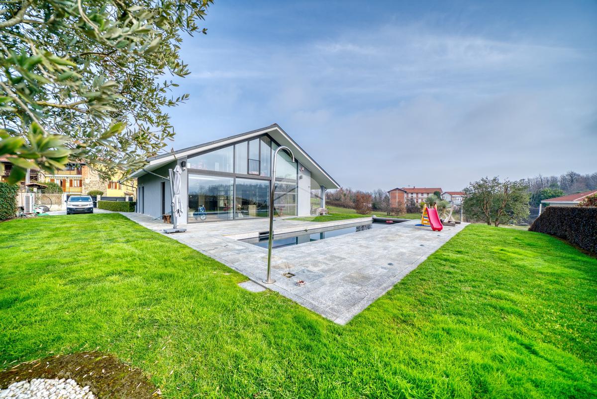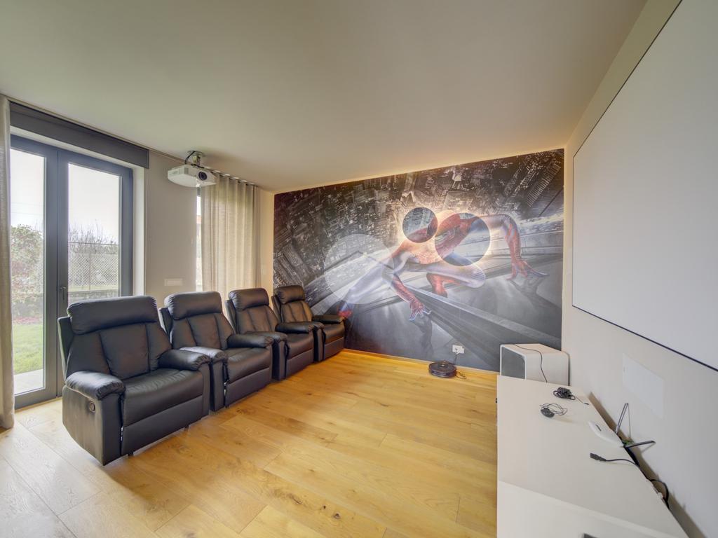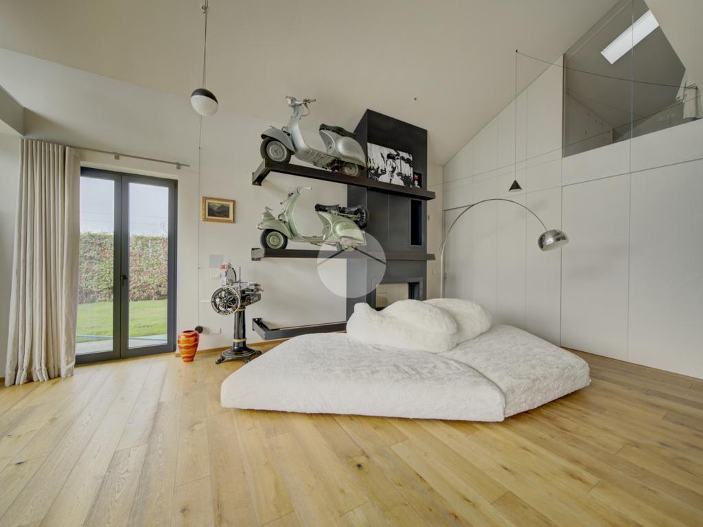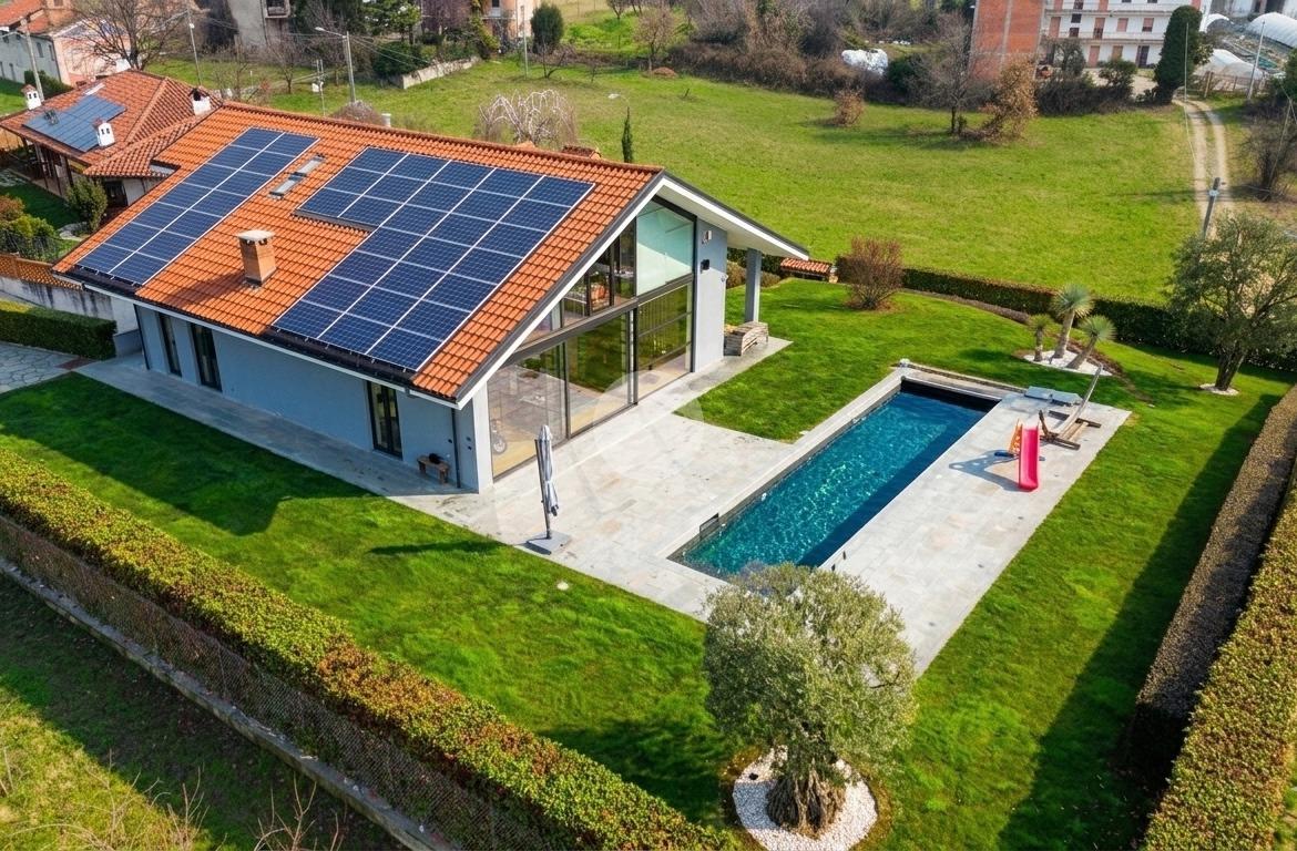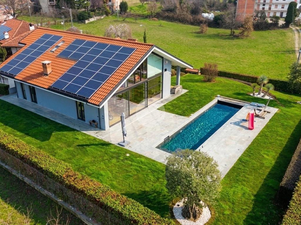 In una posizione privilegiata, villa singola con piscina ristrutturata nel 2020, circondata da un ampio giardino privato di 1500 mq, che rappresenta il massimo del comfort abitativo moderno. Questa residenza è un vero gioiello dell'architettura contemporanea, progettata da un noto architetto, e offre una serie di caratteristiche all'avanguardia che la rendono unica nel suo genere. La villa è dotata di un riscaldamento a pavimento, alimentato esclusivamente da un impianto fotovoltaico da 11 kW, integrato con una pompa di calore per l'accumulo di acqua calda. Grazie alla ventilazione meccanica centralizzata, l'immobile garantisce un ambiente salubre e confortevole in ogni stagione. La sofisticata impiantistica permette di raggiungere una classe energetica A4, con consumi energetici minimi, elevando ulteriormente il valore di questa proposta. La zona giorno, di circa 80 mq, si distingue per l'intera parete vetrata che offre una vista incantevole sulla piscina riscaldata, creando un'atmosfera luminosa e accogliente. Al piano terreno, oltre alla spaziosa area living, sono presenti la prima camera da letto, una sala cinema, un bagno di servizio e un utile ripostiglio. La scala interna conduce al piano primo, completamente abitabile, dove si trovano tre camere da letto, due bagni e una camera armadi, tutti concepiti per garantire privacy e comfort, pur affacciandosi elegantemente sul soggiorno sottostante. Un ulteriore valore aggiunto è rappresentato dal piano seminterrato, che, sebbene sia da ristrutturare, offre ampi spazi. Qui troviamo un box auto doppio, una taverna, un bagno, una cantina, una lavanderia e un locale tecnico. È importante sottolineare che i lavori di ristrutturazione saranno eseguiti a cura e spese della parte venditrice prima dell'atto notarile. Tra i comfort di cui è dotata la villa, si segnalano il sistema di filodiffusione in tutte le stanze, l'impianto di musica esterna nella zona piscina, velux elettrici, un sistema intelligente per la gestione del riscaldamento, predisposizione per aria condizionata e aspirazione centralizzata per la pulizia dei pavimenti. Inoltre, nel giardino è stata installata una cisterna per la raccolta dell'acqua piovana, fondamentale per alimentare l'irrigazione automatica delle aree verdi, contribuendo così alla sostenibilità ambientale. Infine, un sistema di antifurto con telecamere interne ed esterne garantisce la massima sicurezza per tutta la famiglia.